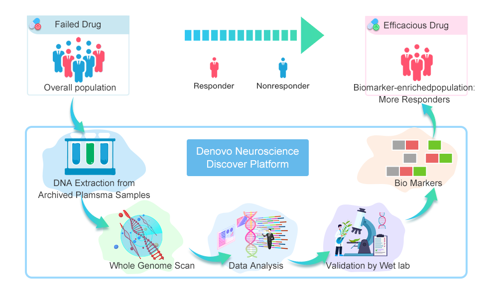 Drug candidates often fail in late-stage clinical development due to insufficient efficacy or unfavorable safety profiles. Denovo’s technology offers a transformative solution: by applying our proprietary biomarker discovery platform to archived patient samples, we can retrospectively identify genetic markers that predict treatment response. This enables drug developers to redesign future trials for smaller, genetically enriched patient populations, reducing cost, increasing probability of success, and supporting a personalized medicine strategy.